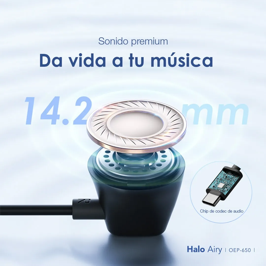 Los auriculares Oraimo OEP-650 están equipados con controladores dinámicos de 14.2 mm y un chip DAC integrado, proporcionando graves profundos, agudos cristalinos y medios detallados. Sumérgete en una experiencia musical auténtica y envolvente.