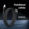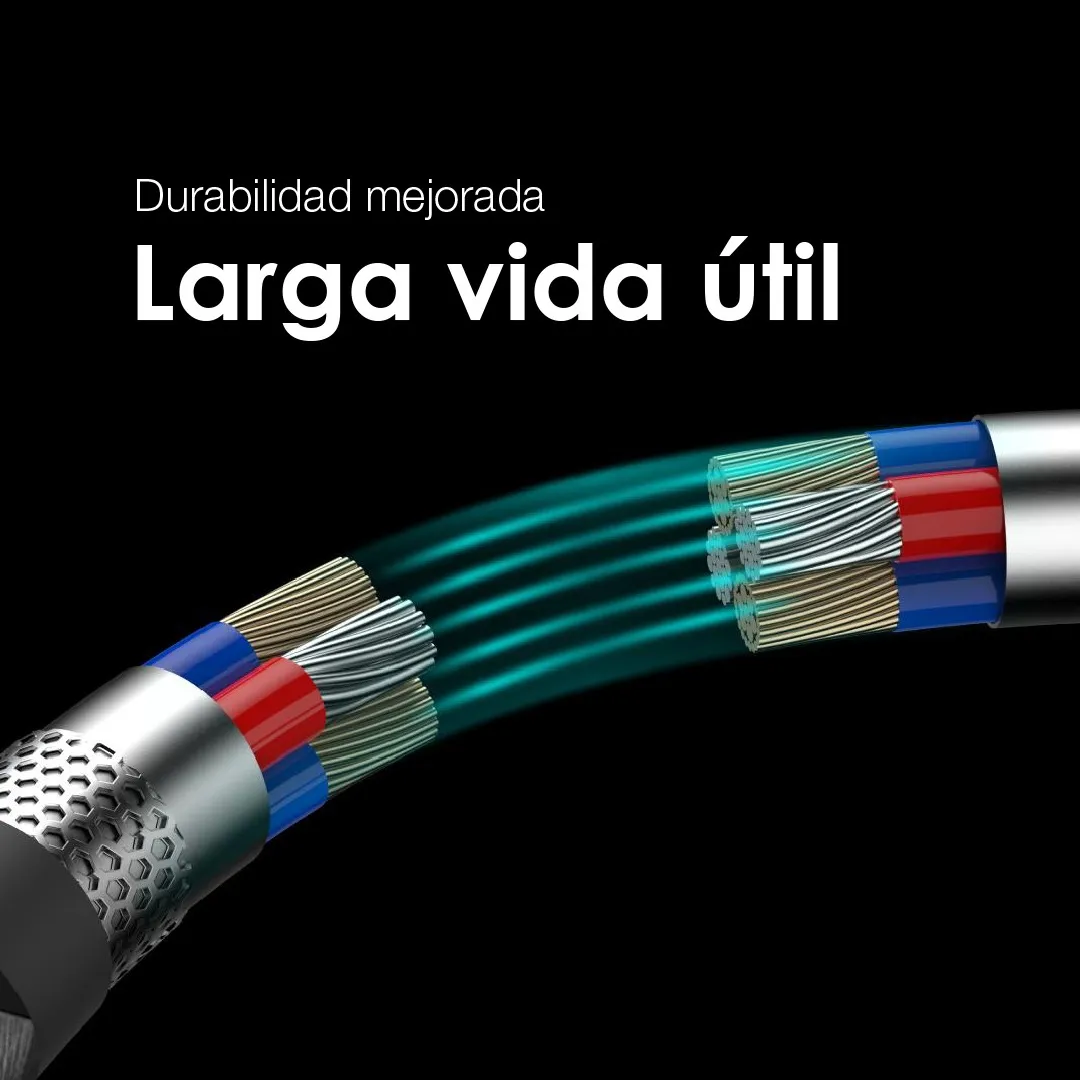 La fibra de aramida es un material extremadamente resistente que se utiliza en aplicaciones de alta resistencia, como chalecos antibalas y neumáticos reforzados. Cuando se incorpora en los cables de carga, mejora significativamente su durabilidad. Estos cables son menos propensos a romperse, doblarse o desgarrarse, lo que los hace ideales para un uso intensivo y prolongado.