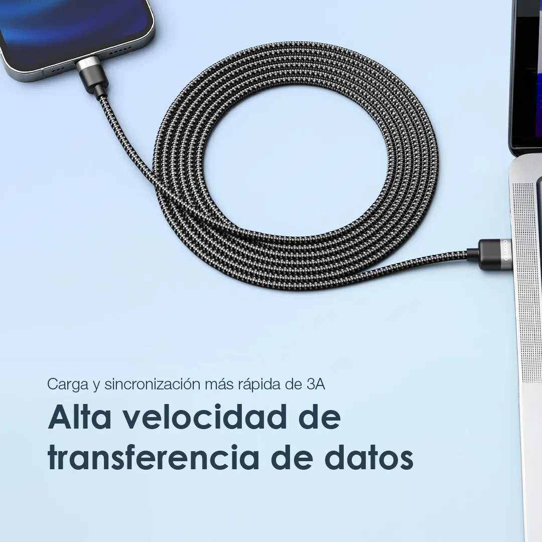 Suministra corriente a tus dispositivos por medio de carga rápida, con este resistente cable podrás conectar tus dispositivos tipo C. Podrás usarlo en tu casa, en el carro, en el trabajo o en tu lugar favorito para cargar tu dispositivo o también para sincronizar música, fotos o datos en el momento que lo necesites a una velocidad increíble.