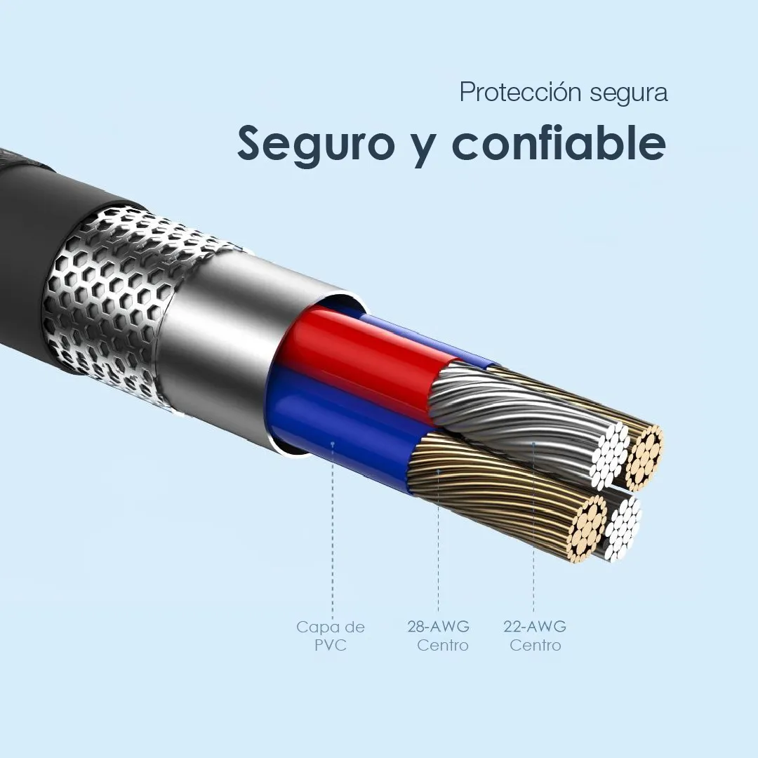 Materiales de alta calidad que resisten hasta 5 veces más que un cable promedio, disfruta de la garantía de seis meses ORAIMO.