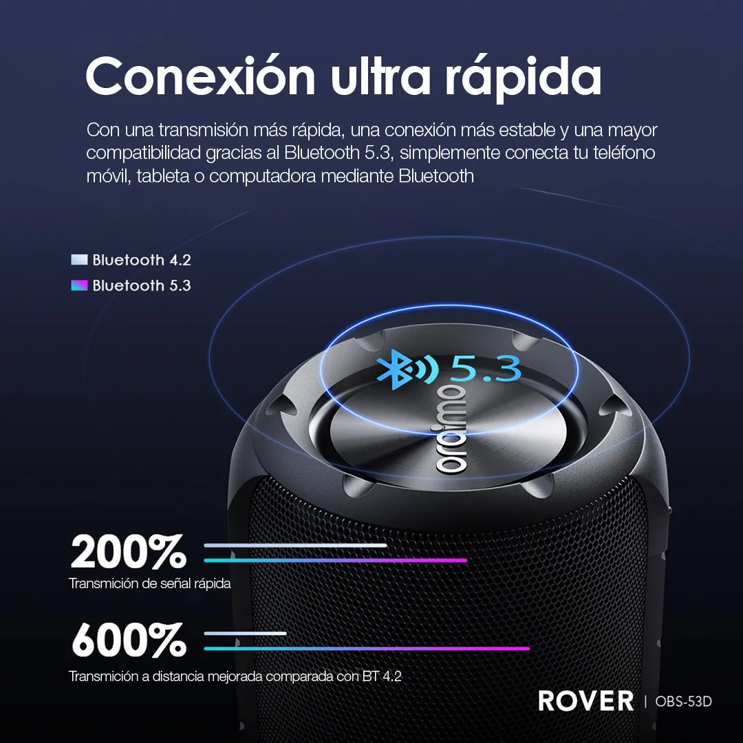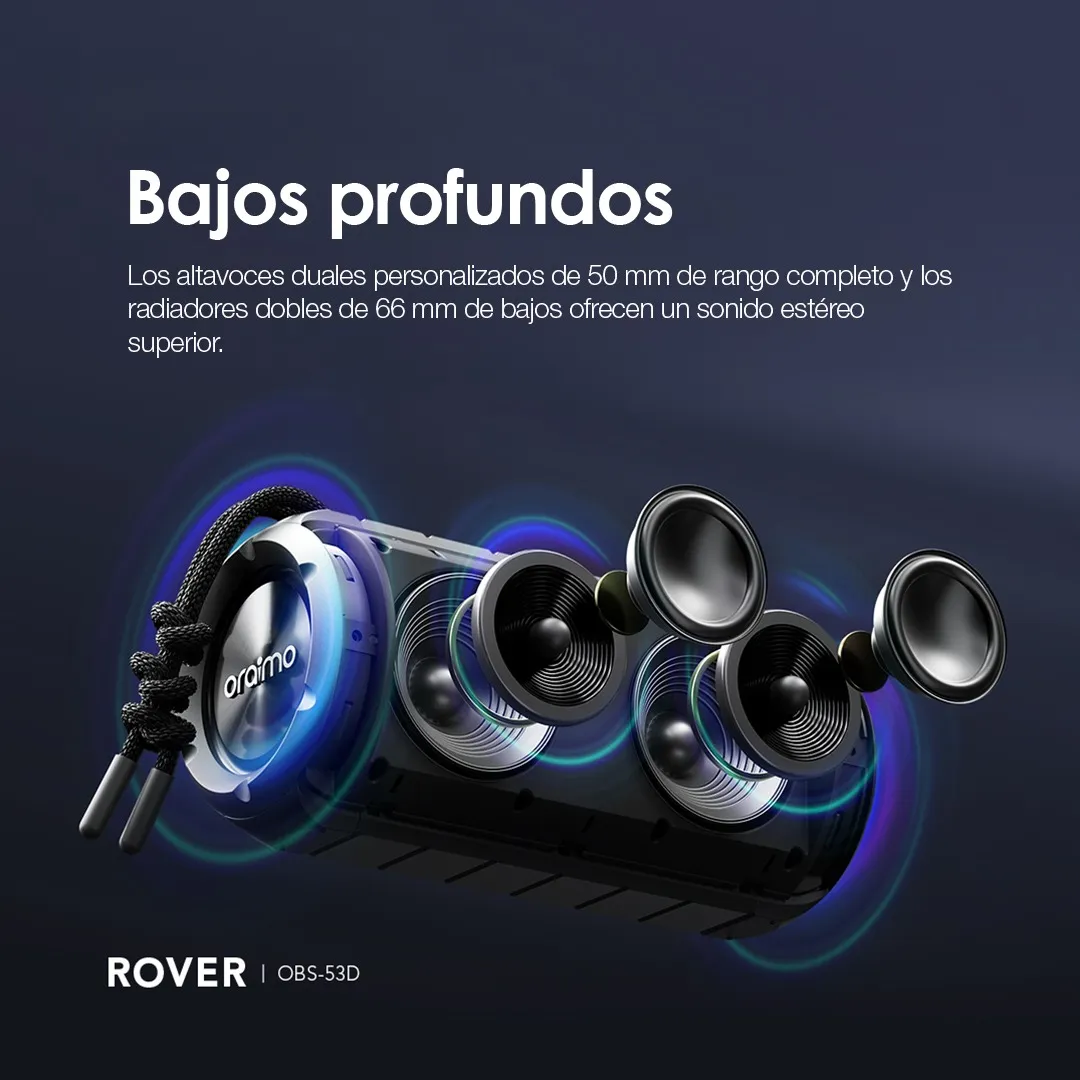 Los controladores duales de rango completo de 50 mm personalizados y los radiadores de graves duales de 66 mm brindan un sonido estéreo superior. Oraimo HavyBass™ DSP te permitirá sentir los graves más profundos, los detalles de los instrumentos más ricos y la voz más nítida gracias a un chip de procesamiento digital dual creado por expertos en acústica. Experimente un sonido potente con oraimo Rover.